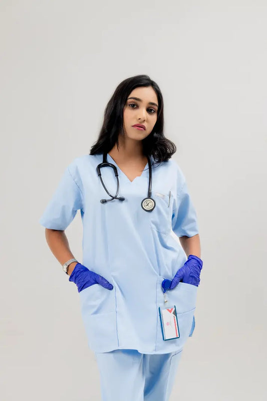 Anaya-Ciel Blue Premium Scrubs are crafted for comfort, durability, and a professional look. Fabric: Premium Poly Viscose...