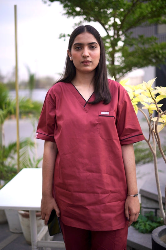 Ayra- Maroon Premium Scrubs, crafted for comfort, durability, and a polished professional look. Featuring a...