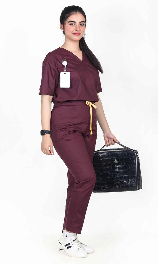 Anaya-Maroon Premium Scrubs are crafted for comfort, durability, and a professional look. Fabric: Premium Poly Viscose Fabric...