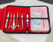 It includes all essential instruments — needle holder, forceps, scissors, scalpel handle, blades, and sutures — neatly packed in a premium case.